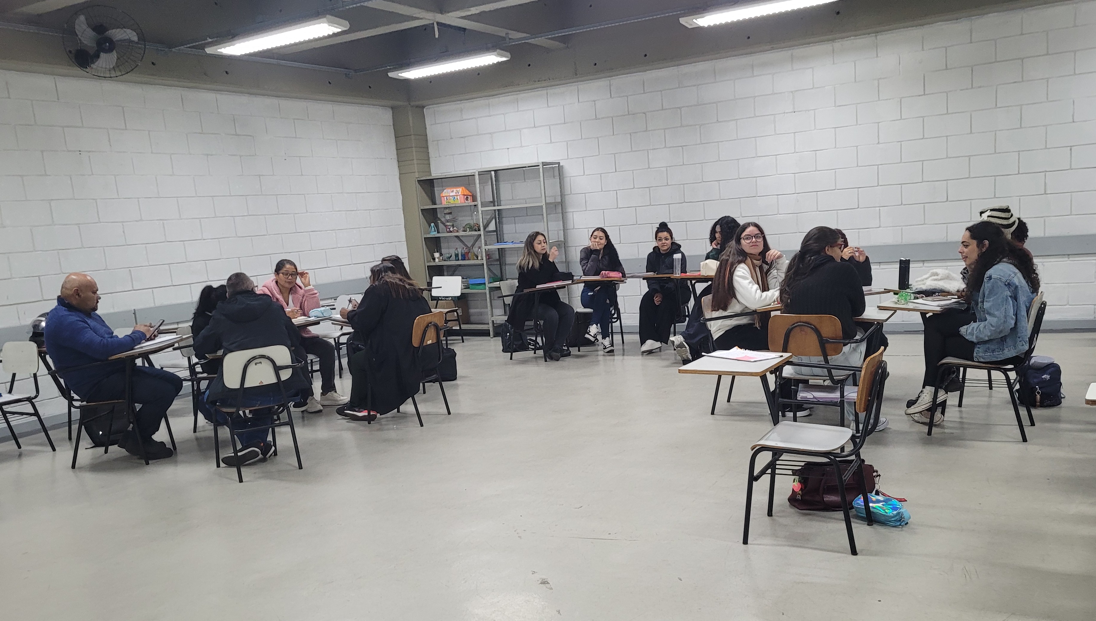 Para a dinâmica em sala, os estudantes foram divididos em três grupos:
